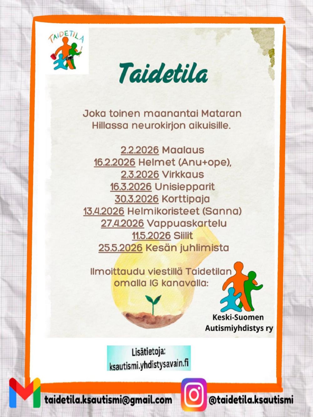Avoin taide- ja käsityöpaja kaikille neurokirjon aikuisille