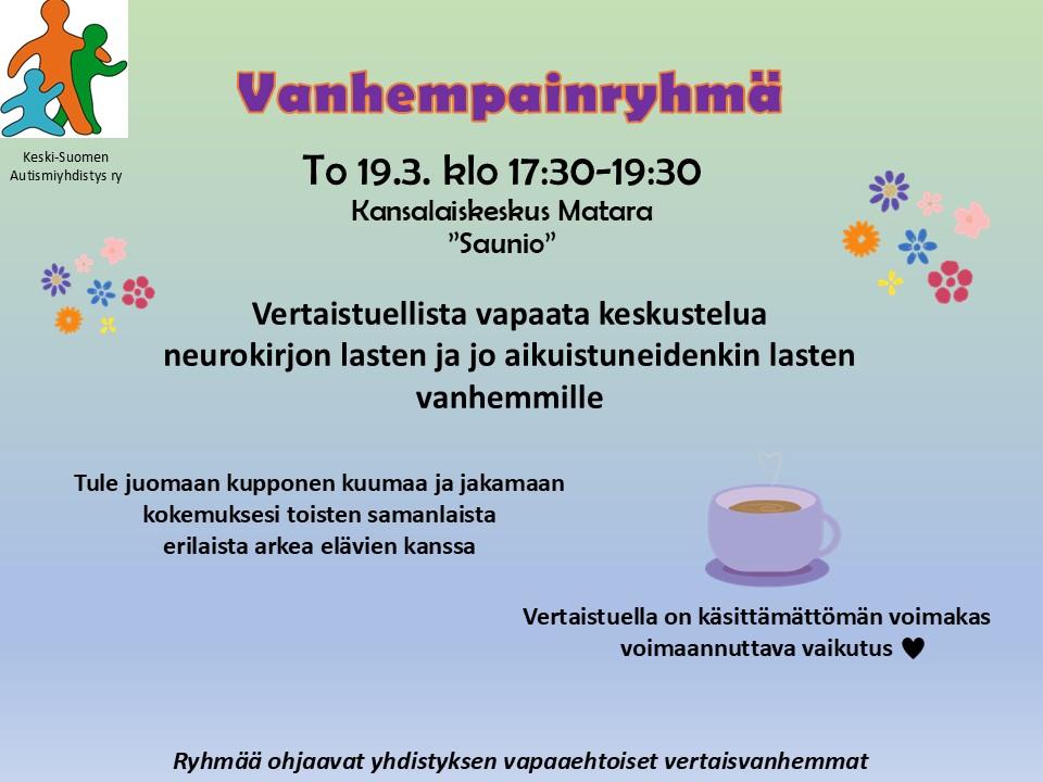Vertaistuellista vapaata keskustelua kahvittelun ja/tai teen lomassa neurokirjon lasten ja jo aikuistuneidenkin lasten vanhemmille