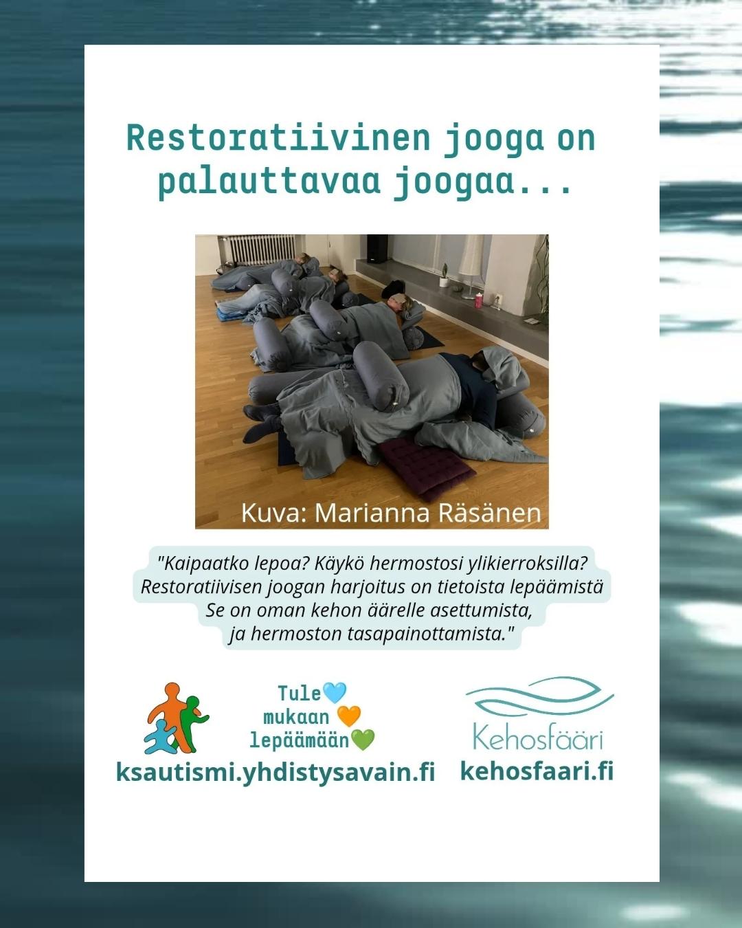 Järjestämme myös Kehosfäärin kanssa restoratiivisen joogan pienryhmän (4-7 henkilöä) jäsenillemme tammikuusta 2026 alkaen. Muitakin toiveita otamme vastaan!